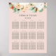 Beautiful wedding seating chart signage paper decor to keep your wedding, engagement party, rehearsal dinner or event organized. This classic seating sign poster has spaces for guest names at multiple tables. Soft pastel tones and greenery modern watercolor florals in shades of peach, white, cream ivory, sage and a brighter deeper green. This personalized event signage coordinates with our full botanical boho floral collection of stationery and event paper goods.