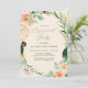 Beautiful engagement party invitations featuring an elegant modern neutral pastel tone watercolor botanical floral greenery frame in soft earth tones of peach, orange, soft blush, yellows, and lots of shades of green from sage green to bright and deeper greens. Your personalised details are displayed in an elevated typography layout that puts the guest of honour front and centre.