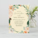 Beautiful bridal shower invitations featuring an elegant modern neutral pastel tone watercolor botanical floral greenery frame in soft earth tones of peach, orange, soft blush, yellows, and lots of shades of green from sage green to bright and deeper greens. Your personalised details are displayed in an elevated typography layout that puts the guest of honour front and centre.