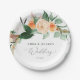Beautiful wedding paper plates decor to share your special day with your guests. These classic custom printed tabletop dinner plates are perfect to decorate your reception or ceremony space and delight your guests with a beautifully coordinated event.. Soft pastel tones and greenery modern watercolor florals in shades of peach, white, cream ivory, sage and a brighter deeper green. This personalised event supplies accessory coordinates with our full botanical boho floral collection of stationery and event paper goods.