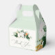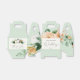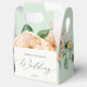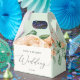 Beautiful wedding gable favour boxes decor to share your special day with your guests. These classic custom printed treat boxes are perfect to decorate your reception or ceremony space and delight your guests with thank you party gifts, sweets, and treats. Soft pastel tones and greenery modern watercolor florals in shades of peach, white, cream ivory, sage and a brighter deeper green. This personalised event supplies accessory coordinates with our full botanical boho floral collection of stationery and event paper goods.