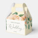 Beautiful wedding gable favour boxes decor to share your special day with your guests. These classic custom printed treat boxes are perfect to decorate your reception or ceremony space and delight your guests with thank you party gifts, sweets, and treats. Soft pastel tones and greenery modern watercolor florals in shades of peach, white, cream ivory, sage and a brighter deeper green. This personalised event supplies accessory coordinates with our full botanical boho floral collection of stationery and event paper goods.