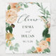 Beautiful wedding wine labels favours decor to share your special day with your guests. This classic wine bottle sticker is perfect to attach to any wine, sparkling wine, or drink bottle, and has soft pastel tones and greenery modern watercolor florals in shades of peach, white, cream ivory, sage and a brighter deeper green. This personalised event supplies accessory coordinates with our full botanical boho floral collection of stationery and event paper goods.