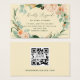 Modern small business-card sized RSVP card with QR code that allows guests to easily reply to your invitation in elegant style. This lovely response card includes soft pastel tones and greenery modern watercolor florals in shades of peach, white, cream ivory, sage and a brighter deeper green. This personalised wedding invite coordinates with our full botanical boho floral collection of wedding stationery, decor, and event paper goods.