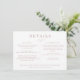 Hand drawn botanical branch, wedding details information template enclosure card. Background colour and text, shown in chic dusty mauve rose, can be customised. Template provides multiple lines for your detailed information. Including reception, accommodations and website.
