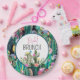 Get these plates to go with your desert-themed party. The design features a deep watercolor design in blue, teal, pink, purple, and yellow. Easily customise the language, font, and font colours to suit your style. Check out other coordinating products in the Botanical Cactus+Florals collection at PetalsandStemsEvents. Enjoy!