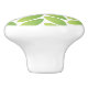 This ceramic cabinet knob is shown in white with a botanical green leaves print.
