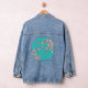 "watercolor cherry blossom denim" "italian green background jacket" "botanical floral fashion art" "spring nature inspired wear" "artistic denim outerwear" "romantic floral style" "statement jacket"