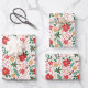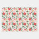 Beautiful Christmas wrapping paper sheets featuring poinsettia, holly, berries, branches, orange slices and cinnamon rolls.