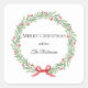 Botanical Christmas Wreath Modern Script Square Sticker