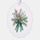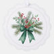 A festive pairing of holiday illustrations: Front featurers pine branches, eucalyptus leaves, red berries, and a green ribbon bow; the back showcasing elegant white script on rich red, celebrating family and seasonal warmth with the message “Merry Christmas" and the senders name.