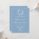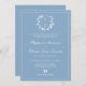 Botanical monogram crest classic dusty blue wedding invitation with QR code and more detailed information on the back.