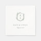 Botanical Crest monogram, wedding paper napkins. Vintage inspired sage green crest adorned with botanical branches.