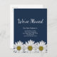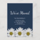 Botanical new home navy blue moving announcement postcard, with a white daisies design and customisable typography lettering. Great for letting loved ones know about your new address.