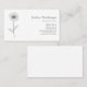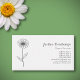 A simple and elegant white business card with a botanical daisy flower illustration in line art (Leucanthemum vulgare). It comes with customisable name, services and full contact in green and grey colours.