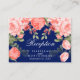 Botanical Dark Blue and Coral Flower - Reception Enclosure Card
