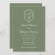 Botanical Deep Sage Green Monogram Crest Wedding Invitation