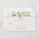 Green leaves, eucalyptus and gold buds on an ivory background top your RSVP details. The back of the card is dark green. The text boxes are easy to personalise with your own information. A mix of modern and calligraphy fonts make this a perfect wedding response card.