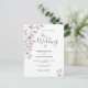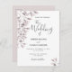 A trendy wedding invitation in white and green. A chic white background on the front. Decorated with dusty rose, pink botanical sprigs and foliage. Modern large handlettered script, typography with the text: The wedding of. Templates for names and wedding details. Dark grey text.