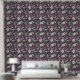 This artwork showcases a sophisticated floral pattern featuring intricately detailed flowers and foliage in rich shades of cream, plum, and grey. Set against a dark charcoal background, the delicate illustrations of ferns, leaves, and blossoms create a striking contrast, highlighting the beauty of each element. The design combines classic botanical motifs with a modern colour palette, resulting in a timeless and elegant composition that exudes a sense of refined beauty.