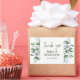 Beautiful rustic hand-painted eucalyptus leaves and botanical foliage in shades of sage, green and dusty blue. Personalise your own elegant thank you wedding stickers with the names of the bride and groom plus their wedding date. See our collection for more beautiful designs in this wedding theme. Botanical Eucalyptus Wedding Label.