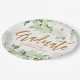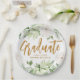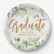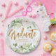 Beautiful pastel floral with watercolor greenery graduation party plates includes pretty gold colour script lettering and the graduate's name and class year on an elegant white background. Shop this store for coordinating 2024 graduation party items and additional colour options!