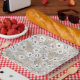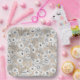 Botanical floral line drawings of romantic roses, daisies, eucalyptus and ferns in a delicate repeat pattern on a neutral tan beige background. An interesting floral pattern to decorate your table and make your next event or party one to remember.