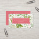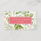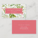 An elegant business card features watercolor green foliage with pink flowers. For more advanced customisation of this design, Please click the "Customise" button above!