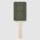 Botanical Foliage Monogram Minimalist, wedding program hand fan. Olive green and white typography with coordinating background colours.