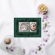 Welcome your little one and share holiday joy with the Botanical Frame Winter Foliage New Baby Foil Holiday Card, a festive birth announcement designed with elegance and seasonal warmth. The front features two custom photo placeholders framed by a beautifully illustrated winter foliage border, pressed in real foil—available in gold, silver, or rose gold for a luxurious shimmer. Set against a rich green background, the design feels both celebratory and timeless. Personalize the back with your baby’s details and a heartfelt message to family and friends. A refined and festive way to introduce your newest arrival during the holiday season.