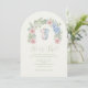 Celebrate the joyous news of your little one's arrival with this charming botanical gender reveal invitation. Featuring a delicate watercolor floral arch in soft pink and blue hues, it beautifully frames a cute baby outfit graphic. Easily customize all the details—date, time, location, and RSVP information—to perfectly suit your special event. This elegant invitation is ideal for expectant parents eager to share their exciting news with family and friends.