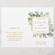 This wedding ceremony program features painted watercolor eucalyptus greenery, green leaves and a gold square frame. For more advanced customisation of this design, Please click the "Customise further" link. Matching items are also available. NOTE: You will need to fold them in half when they arrive.