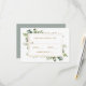 This wedding RSVP card features painted watercolor eucalyptus greenery, green leaves and a gold rectangular frame. For more advanced customisation of this design, Please click the "Customise further" link. Matching items are also available