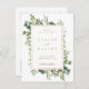 This wedding save the date postcard features painted watercolor eucalyptus greenery, green leaves and a gold rectangle frame. For more advanced customisation of this design, Please click the "Customise further" link. Matching items are also available.