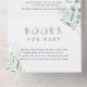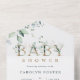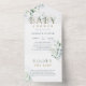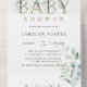 This all in one baby shower invitation card features painted watercolor eucalyptus and green leaves with botanical gold letters. For more advanced customisation of this design, please click Customise Further link to change font, size, and colour.