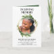 In Loving Memory program featuring on the front cover a photo of your loved one, their name, dates, the memoral venue, date of the event and the whole program is beautifully designed with botanical greenery. On the inside is an obituary and order of service; and on the back a thank you note and the venue of the wake.