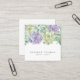 Botanical square business card with a top border consisting of green and purple watercolor succulents at the top and your name and title in a soft grey font. The backside has your contact info. These business cards are perfect for a beauty salon, makeup artist, skin care, hair stylist, interior designer, yoga instructor, event planner or blogger.