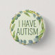Botanical Green Leaves Text Autism 3 Cm Round Badge