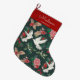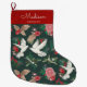 Botanical Green & Red Birds Doves floral pattern Large Christmas Stocking