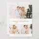 Modern Elegant Botanical Greenery Calligraphy Script 3 Photo Collage Christmas Cards. This festive minimalist multi photo christmas cards features pretty three (3) photo collage, a „Merry Christmas” greeting text which is written in a cursive hand lettered font type in gold and white. On the reverse side watercolor winter botanical greenery foliage, eucalyptus leaves, berries, pine needles and branches. This festive Custom Photo Christmas Cards are a great way to remind loved ones that you're thinking of them this Winter Holiday Season.
