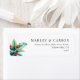 Elevate your wedding invitations with this stylish return address label. The design features vibrant tropical leaves paired with a boho modern style. Printed on high-quality material, these labels add a fresh and elegant touch to your stationery. Ideal for weddings with a bohemian, garden or nature-inspired theme, they create a memorable and personalised detail for your envelopes.