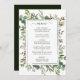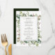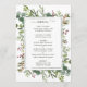 This dinner menu features painted watercolor eucalyptus, green leaves, red berries, pine branches with a green rectangle frame, and a green background on the back. For more advanced customisation of this design, please click the "Customise further" link. Matching items are also available.