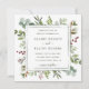 This Christmas | Holiday wedding square invitation features painted watercolor eucalyptus, green leaves, red berries, pine branches with a green square frame, and a green background on the back. For more advanced customisation of this design, please click the "Customise further" link. Matching items are also available.