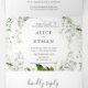 Elegant wedding invitation features watercolor greenery.