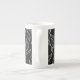Botanical Greenery Floral Black and White Monogram Bone China Mug