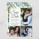 Announce your wedding date with these beautiful elegant watercolor dusty blue and green eucalyptus and greenery with coordinating sage green text featuring 7 engagement photos (3 on the front and 4 on the back). PHOTO TIP: For fastest/best results, choose a photo with the subject in the middle and/or pre-crop it to a similar shape as shown BEFORE uploading so it fits perfectly in the template. Contact the designer via Zazzle Chat or makeitaboutyoustore@gmail.com if you’d like this design modified, on another product or would like coordinating items.