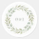 Complete your wedding stationery with these elegant botanical envelope seals, designed to perfectly coordinate with a soft watercolor greenery invitation suite. Featuring delicate eucalyptus and olive foliage arranged in a refined circular wreath, these round envelope stickers add a timeless finishing touch to your wedding envelopes.