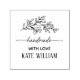 Simple handmade with love by a business stamp with beautifully scripted calligraphy with your name and wrapped in a laurel leaf.