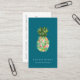 Watercolor botanical island flowers and foliage pineapple shape with blue ocean wave accent, deep ocean blue business cards. Text font style, colour and size, can be customised.