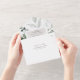 All in One Wedding invitation featuring elegant greenery and botanical leaves. Each card includes a perforated RSVP card that’s addressed and ready for your guests to send back in the mail. Customise with your information or click "click to customise further" to change the font style, size, colour or background colour.